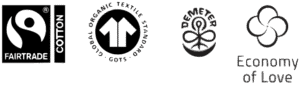 Våra textilier är tillverkade av 100 % ekologisk bomull och certifierade enligt de högsta standarderna, inklusive GOTS, Fairtrade och Demeter.