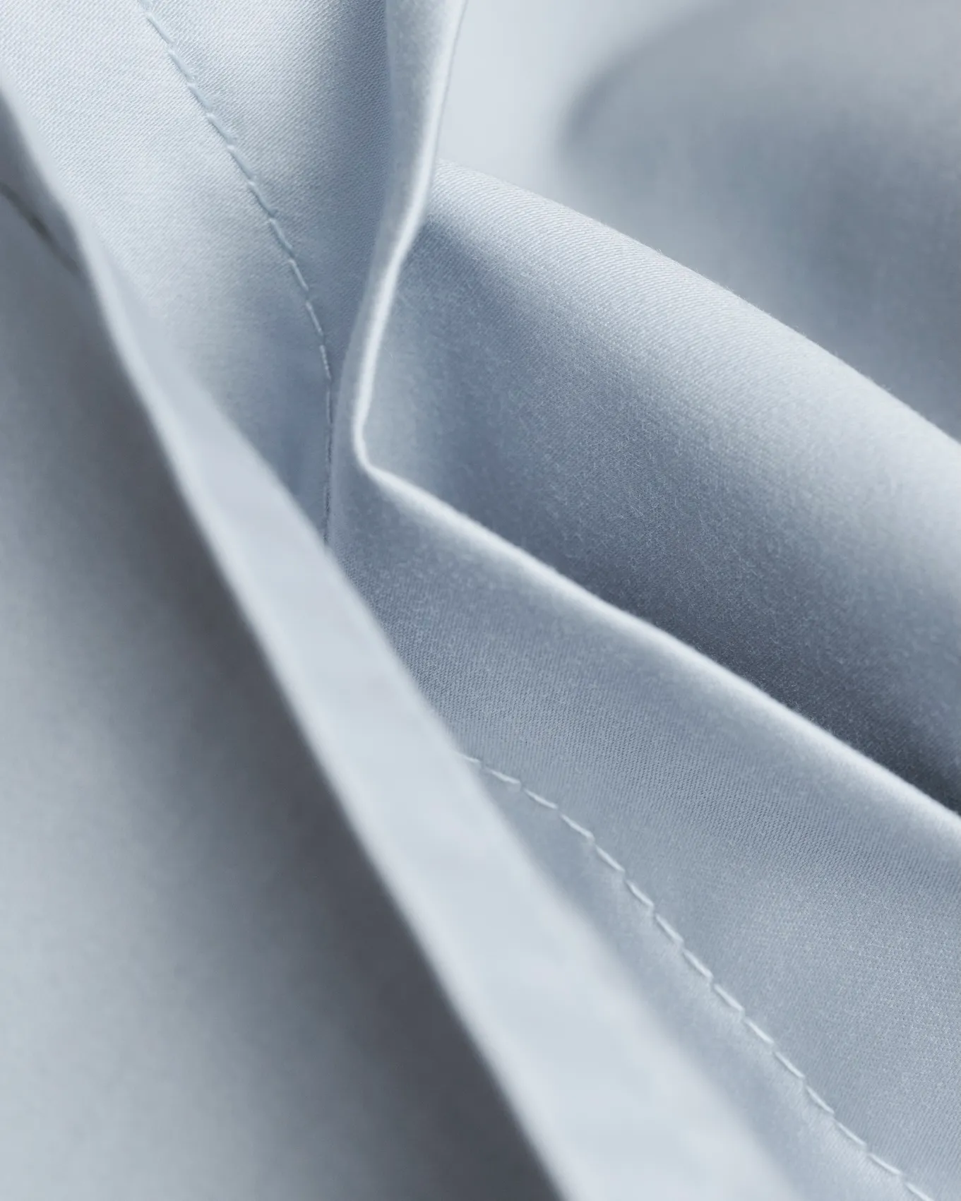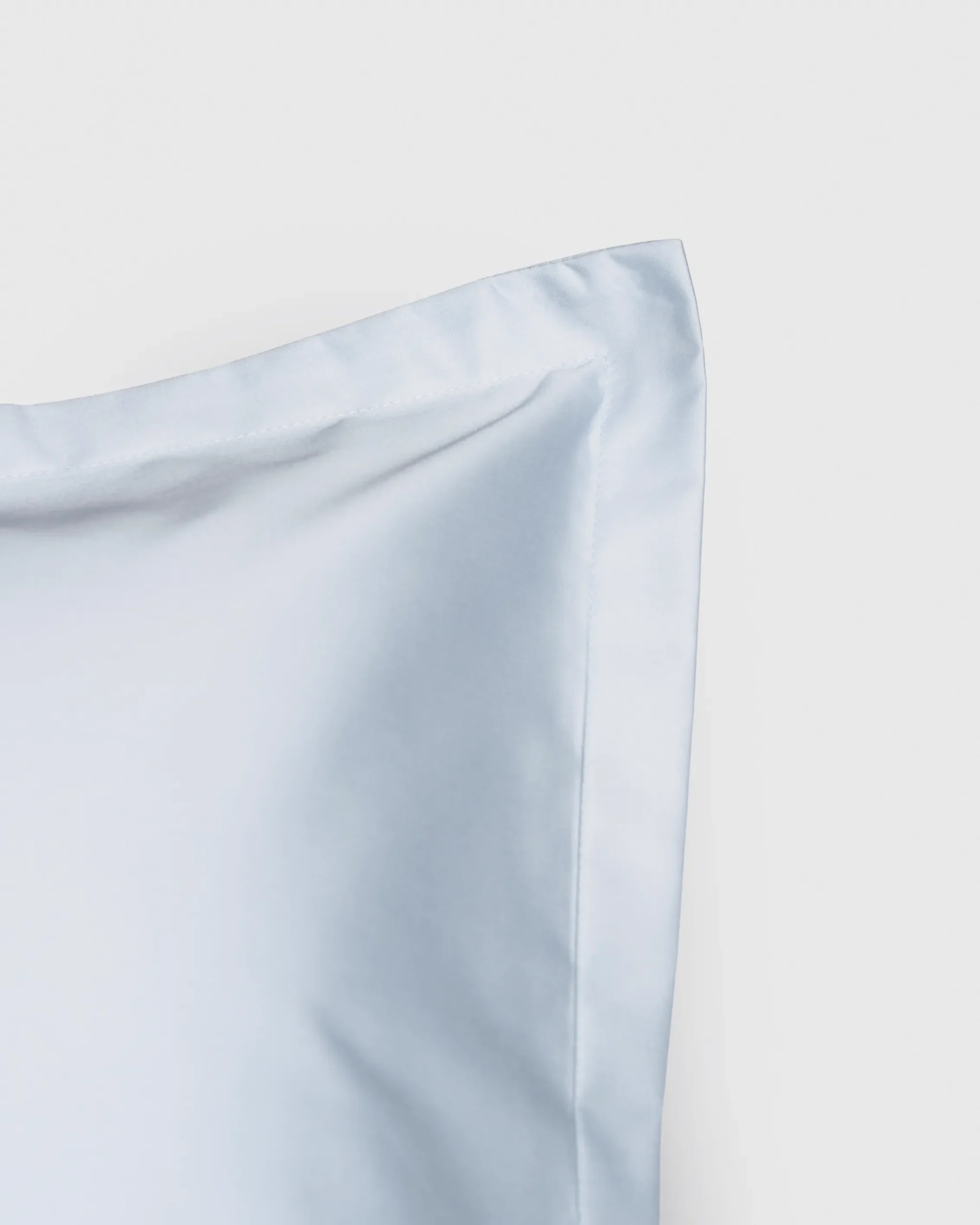 Örngott i satinväv av ekologisk bomull med 500 TC. Ice Blue är en klar, kylig blå nyans med diskret lyster. En 2,5 cm bred vinge löper runt hela örngottet.