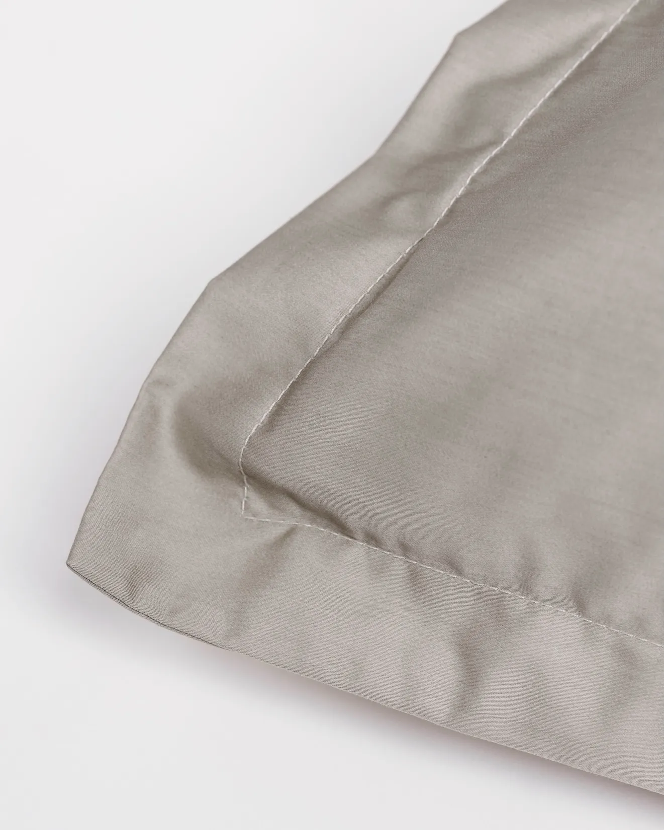 Örngott i satinväv av ekologisk bomull med 500 TC, i storleken 50×90 cm, för en ombonad bäddning. Modern Greige är en varm mullvadsfärg med diskret lyster. Vingen ramar in örngottet längs hela kanten.