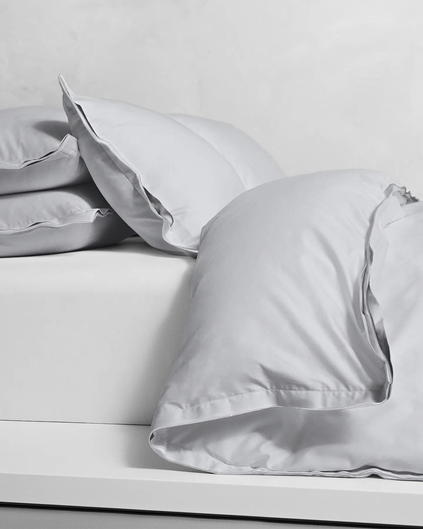 Påslakan i 100 % ekologisk Giza 86-bomull med handsydd kant. Mist Grey kombineras med vitt för en tydlig och lugn färgpalett